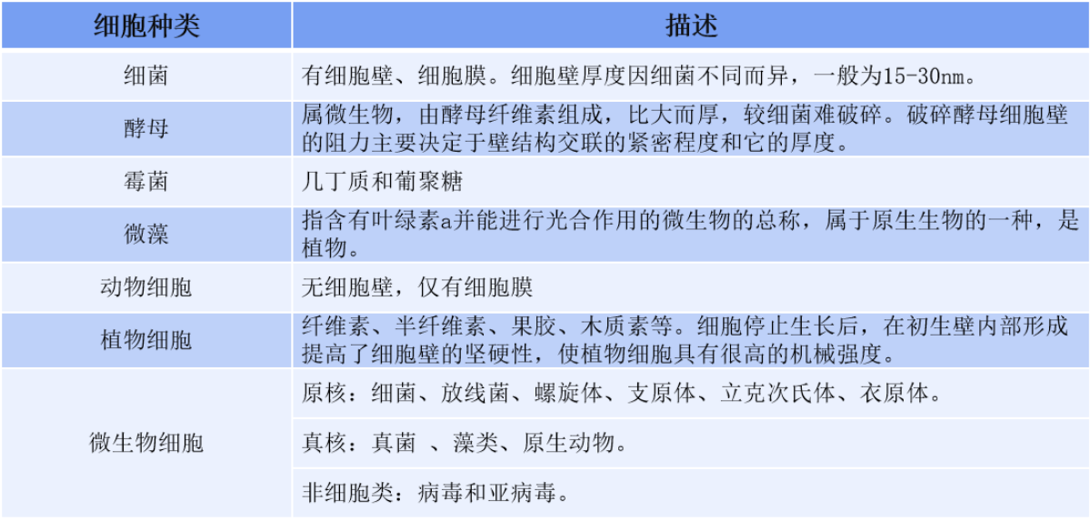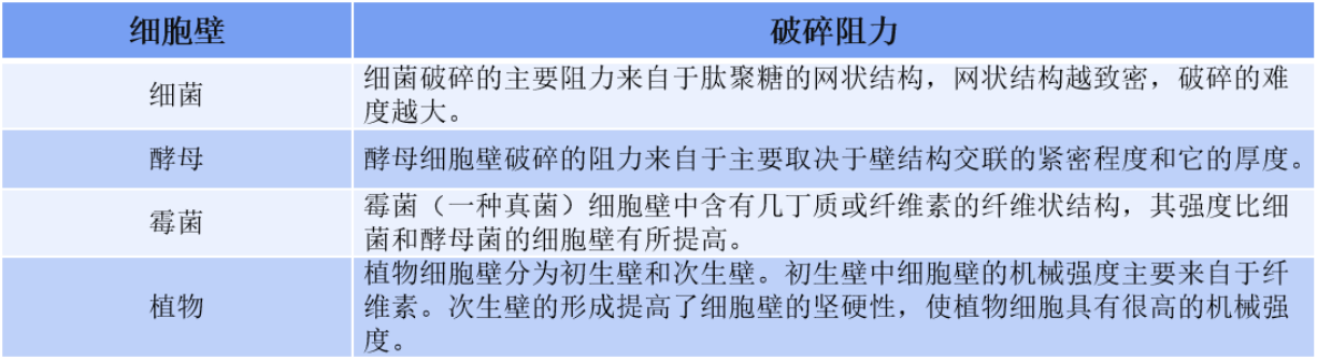 1、物理破碎时影响因素:细胞的大小、形状、细胞壁的厚度、聚合物的交联程度